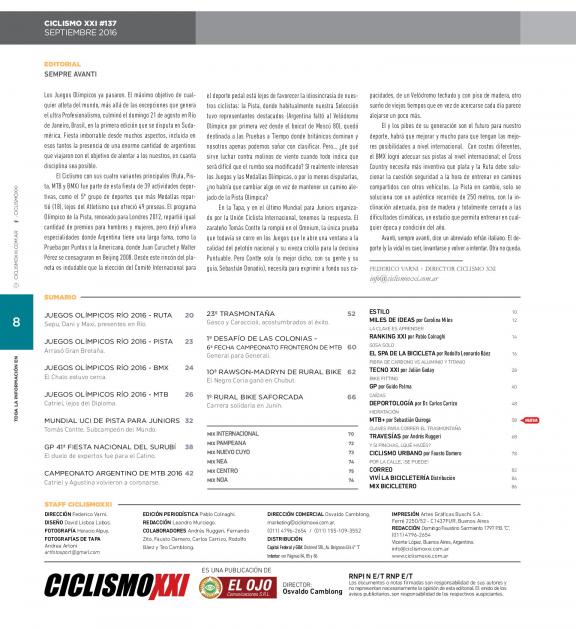 La revista que mes a mes refleja toda la actividad del ciclismo argentino, latino e internacional en todas sus modalidades.