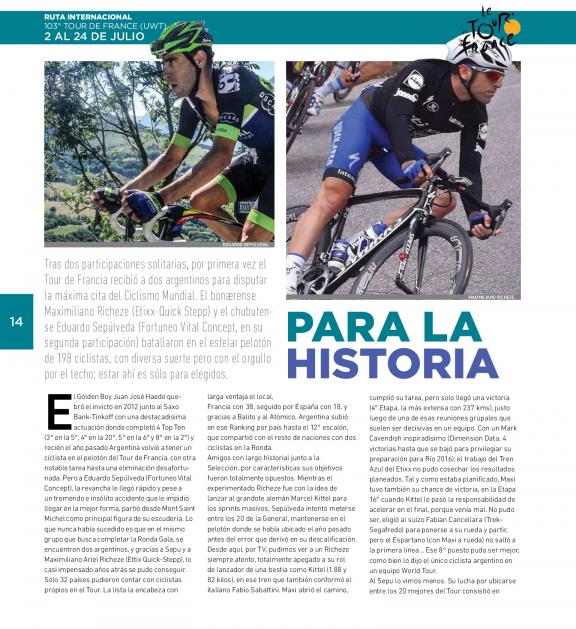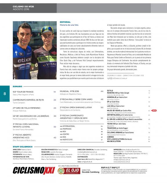 La revista que mes a mes refleja toda la actividad del ciclismo argentino, latino e internacional en todas sus modalidades.
