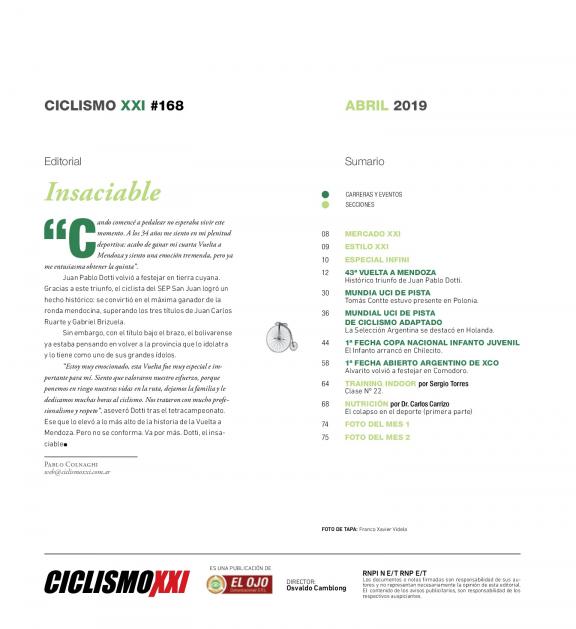 La revista que mes a mes refleja toda la actividad del ciclismo argentino, latino e internacional en todas sus modalidades.