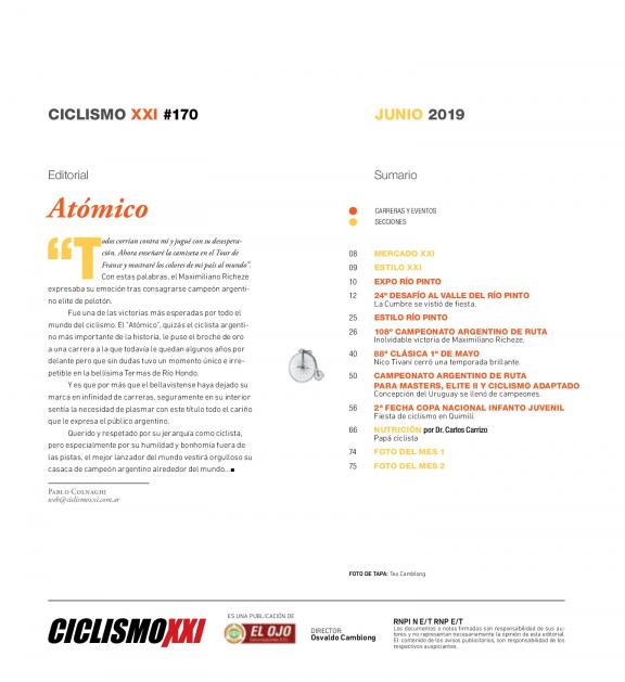 La revista que mes a mes refleja toda la actividad del ciclismo argentino, latino e internacional en todas sus modalidades.