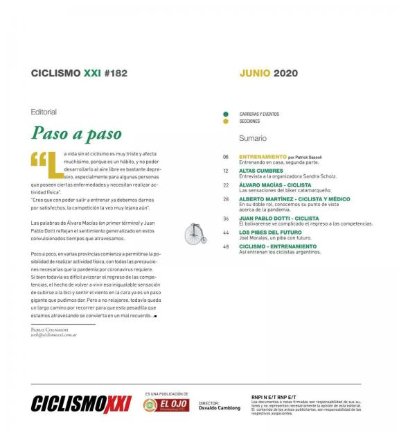 La revista que mes a mes refleja toda la actividad del ciclismo argentino, latino e internacional en todas sus modalidades.