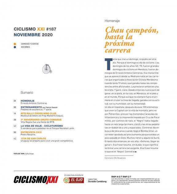 La revista que mes a mes refleja toda la actividad del ciclismo argentino, latino e internacional en todas sus modalidades.