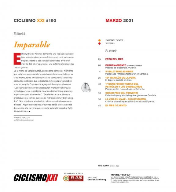 La revista que mes a mes refleja toda la actividad del ciclismo argentino, latino e internacional en todas sus modalidades.