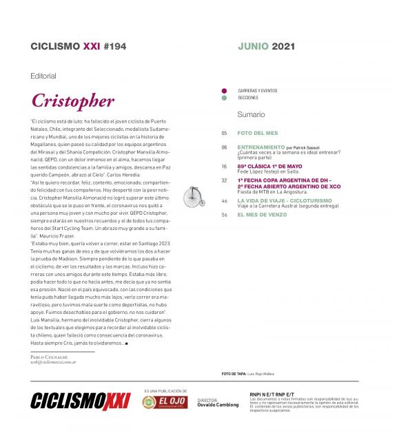 La revista que mes a mes refleja toda la actividad del ciclismo argentino, latino e internacional en todas sus modalidades.