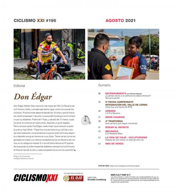 La revista que mes a mes refleja toda la actividad del ciclismo argentino, latino e internacional en todas sus modalidades.
