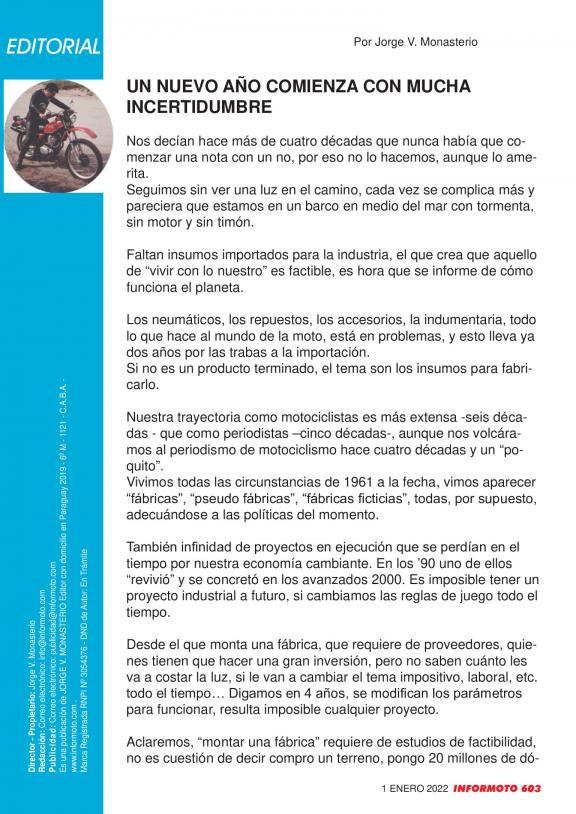 Revista líder del motociclismo argentino y latinoamericano. Mas de 40 años de vigencia. La publicación de la moto y de los motociclistas profesionales y amateurs.