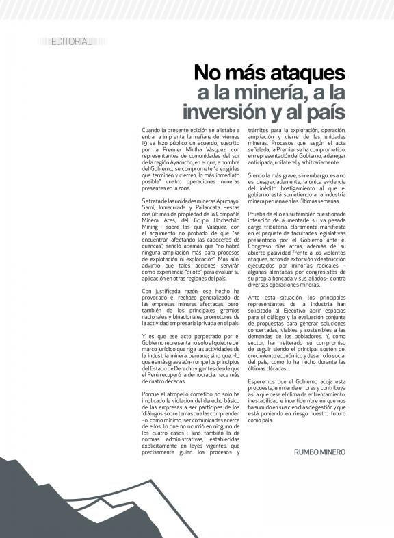 RUMBO MINERO es la revista de Perú y Latinoamérica de negocios de la minería