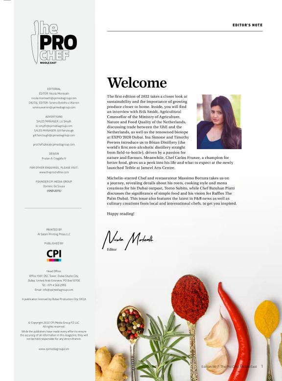 It’s about food. Seriously. Unlike other F&B trade magazines, The Pro Chef Middle East focuses on chefs and their inspiration, allowing them to demonstrate their talents as well as providing a platform for skill transfer, produce knowledge and recipe development. And, unlike other food magazines aimed at the amateur cook, it will provide enthusiastic fine diners with a real insight into the world of the professional chef, inspiring them to visit restaurants and develop their own cooking techniques and menus. For both communities, it’s a resource of new products and equipment. And for suppliers and manufacturers wanting to reach both a professional front and back of house audience and a keen amateur community, it’s an irresistible mix. The Pro Chef Middle East is a food magazine like no other in the regional market, aimed exclusively at a knowledgeable and high spending audience, interested in everything from quality knives or kitchen equipment to premium produce and speciality ingredients. If you’re serious about food, this is the place to be.