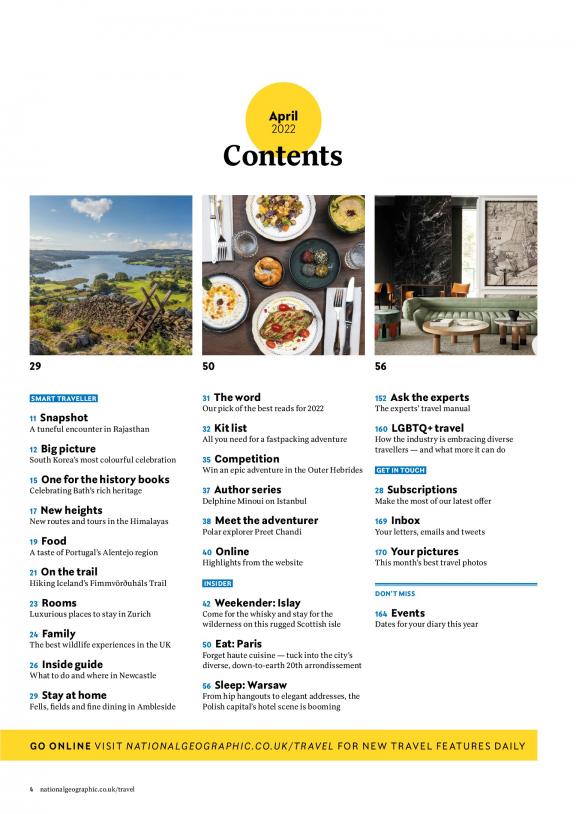 National Geographic Traveller is a monthly travel magazine published by National Geographic Partners. It was first published in 1987 and is currently one of the most popular travel magazines in the world. The magazine covers all aspects of travel, from destination guides to cultural features to photography. It also features interviews with travel writers and photographers, as well as recipes from around the world. National Geographic Traveller is a popular read for many people who are interested in travel and exploration. It is known for its high-quality photography and informative content, and it has helped millions of people plan their dream vacations. Here are some of the things you can expect from National Geographic Traveller magazine: * Destination guides to the world's most popular and off-the-beaten-path destinations * Cultural features on the people, places, and food of different countries * Photography from some of the world's best travel photographers * Interviews with travel writers and photographers * Recipes from around the world If you're looking for a magazine that will help you plan your next vacation, then National Geographic Traveller is a good choice. Subscribe today and start dreaming of your next trip!
