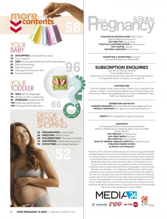 Your Pregnancy is the only local magazine that offers relevant, credible and accurate information on all aspects of pregnancy. Its local and international experts answer all questions quickly and respectfully. The magazine acknowledges pregnant women’s need to look and feel good. They are concerned about their baby’s health and wellness, but also care about their own. The magazine provides all the info that’s needed, as well as the latest fashion and beauty trends, health issues and exercises. It covers all aspects of pregnancy. The team loves what it does – and it shows.
