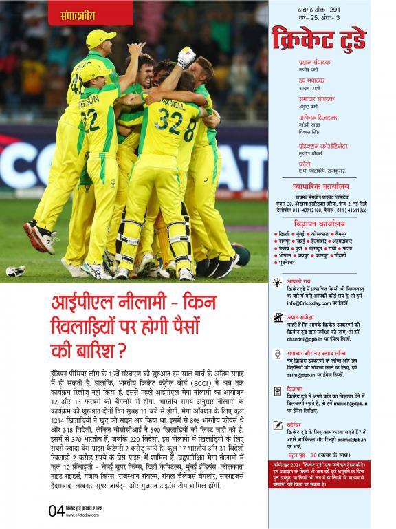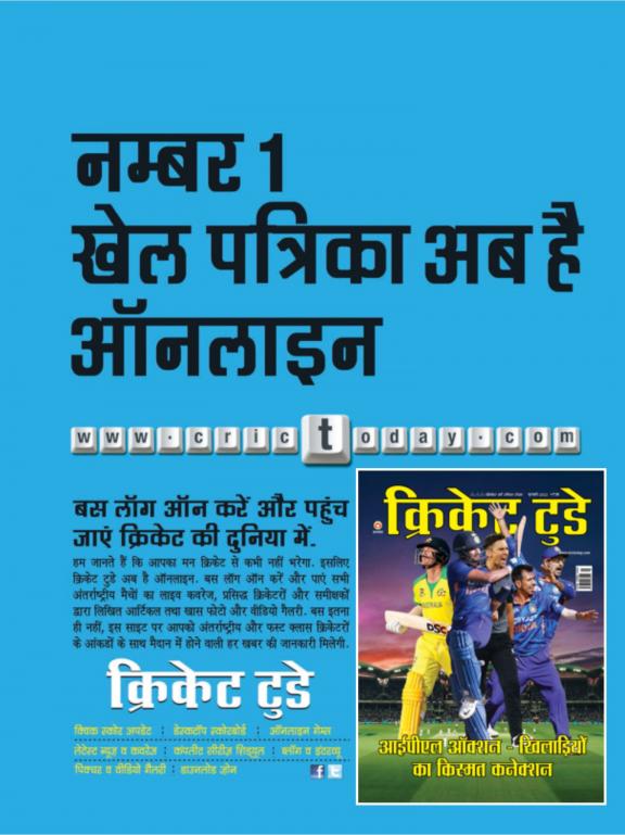 Cricket Today is a monthly cricket magazine in Hindi published by a Delhi-based company, Diamond Magazines. It is one of the most popular cricket magazines in India, and is known for its in-depth coverage of all aspects of the game, including: * Match reports and analysis: Cricket Today provides detailed match reports and analysis of all major cricket matches, including Test matches, One-Day Internationals, and T20 Internationals. The magazine also covers domestic cricket tournaments in India, such as the Ranji Trophy and the Indian Premier League. * Player profiles and interviews: Cricket Today features profiles of top cricket players from India and around the world, as well as interviews with them. These profiles and interviews provide readers with insights into the lives and careers of these players. * Expert columns and commentary: Cricket Today features columns and commentary from leading cricket experts, including former players, coaches, and journalists. These columns and commentary provide readers with different perspectives on the game. * Cricket news and trends: Cricket Today covers the latest cricket news and trends from India and around the world. The magazine also provides analysis of the latest developments in the game. Cricket Today is a valuable resource for anyone who is interested in cricket. It is a must-read for anyone who is looking to stay informed about the latest cricket news and trends, or who is looking for in-depth coverage of all aspects of the game.