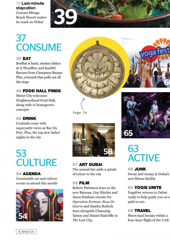 Stylish, Contemporary, Informed, Inspirational and Fun. Aimed at people looking to make the most of their time in the UAE. What’s On is packed with expert opinion, insider info, news, reviews, competitions and much more. What’s On provides in-depth coverage, strong emphasis on eating out, it is design driven, and has a strong credible entertainment guide.