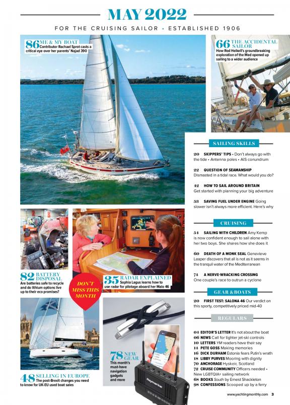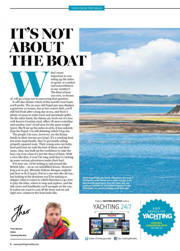 Published by Time Inc (UK). Yachting monthly is at the heart of the British yachting market and is for people who actively sail their boats - whether cruising across the channel, around the coast or further a field in blue waters. It provides an entertaining mix of vital information for cruising yachtsmen with all levels of experience, which maximises their enjoyment, increases their skills and gives them the confidence to broaden their horizons.