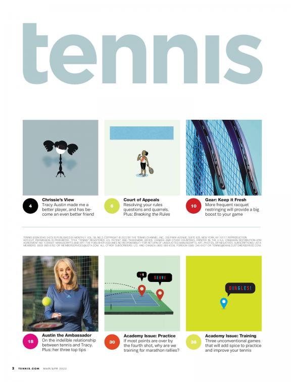 By offering a comprehensive and authoritative look at one of the nation’s most popular sports, Tennis Magazine is the essential lifestyle guide for the game’s enthusiasts. Every issue speaks to the passion of a readership that not only enjoys watching the world’s top professionals, but also plays the game 100-plus times per year. Whether featuring instruction tips from the sport’s most renowned personalities or reviewing everything from racquets and apparel to world-class travel destinations, content reflects the lifestyle of affluent, healthy, active readers through striking photography, confident editorial and impeccable design.