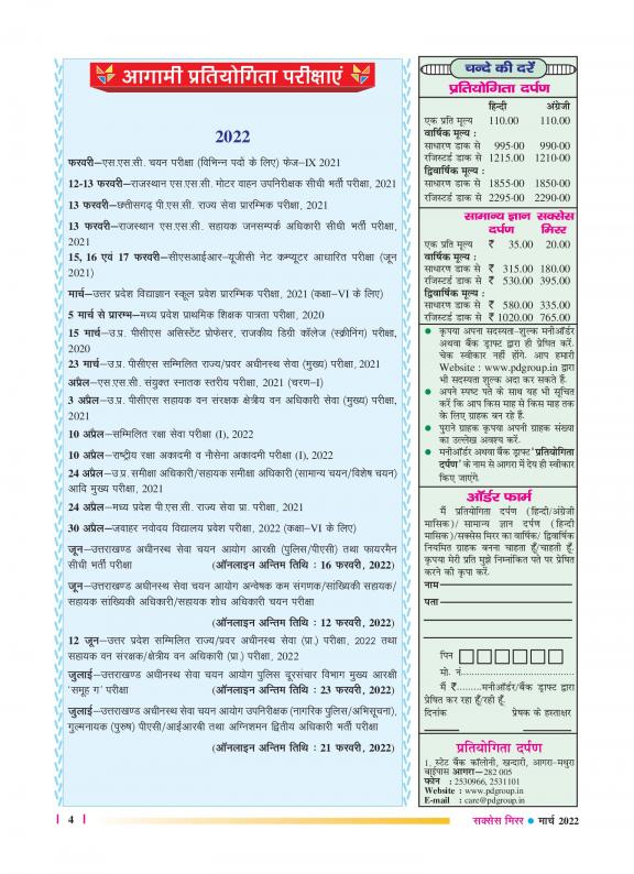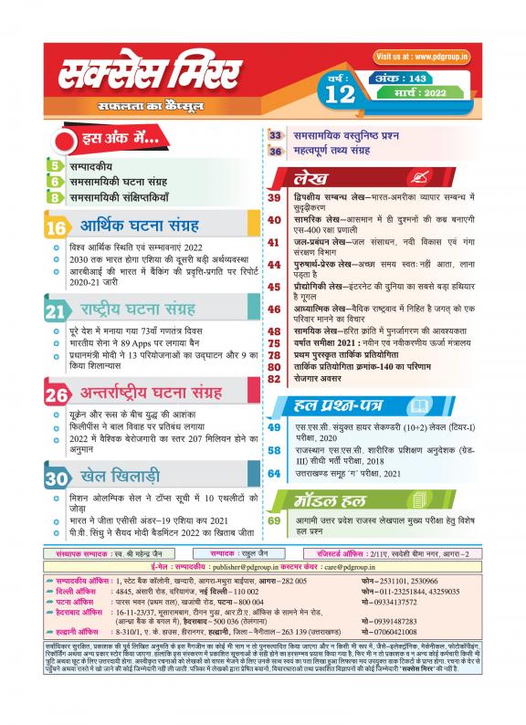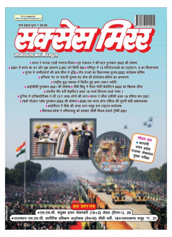 Success Mirror - Hindi is a Youth Oriented and This magazine provides - Overview of Latest events and Information which are useful for competitive Exams - Solved Question Paper and Career development Guidelines - Information about Jobs in Govt Sectors
