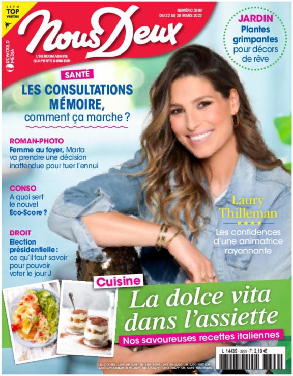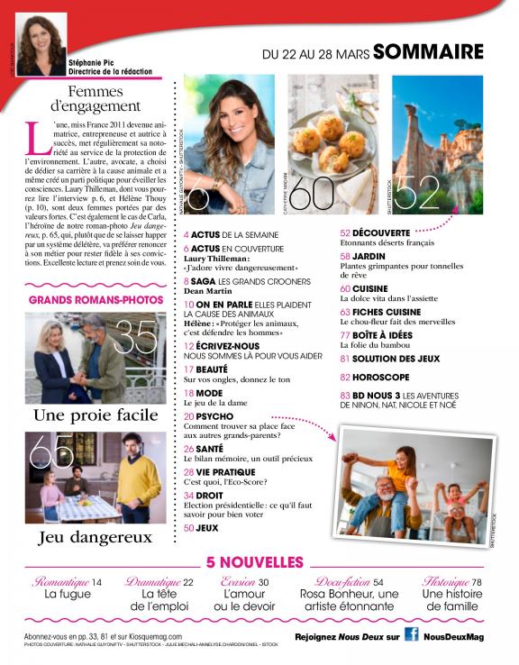 La marque du Féminin Romanesque. ( France ) Nous Deux invite au rêve avec la fiction romanesque et offre du pratique avec sa partie magazine féminin (mode, beauté, cuisine, évasion etc.)