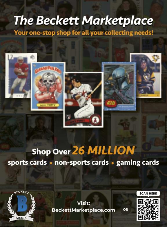 Beckett Sports Card Monthly is a monthly magazine loaded with everything you need to know about new all sports, non-sports, gaming cards and more. It offers news, values for new releases as well as past sets along with the latest collecting trends. Our readers use this magazine to find out what's new, what their cards are worth, who's hot, who's not and more. For veterans and novices, Beckett Sports Card Monthly is a must-have resource to stay informed and aware of the hobby. What to expect in each issue: • Editorial coverage: A mix of news, features and opinion pieces covering what’s new and what’s interesting in the hobby along with insight on how and what to collect. • Previews: All you need to know about upcoming card sets. • Reviews: Breakdowns and opinions of the newest card releases. • The Hot List: A visual list and values for the 20 hottest cards on the market. • The Price Guide: More than 200 pages filled with price ranges for new releases and past sets. • Market Watch: A look at the key players and products to collect.