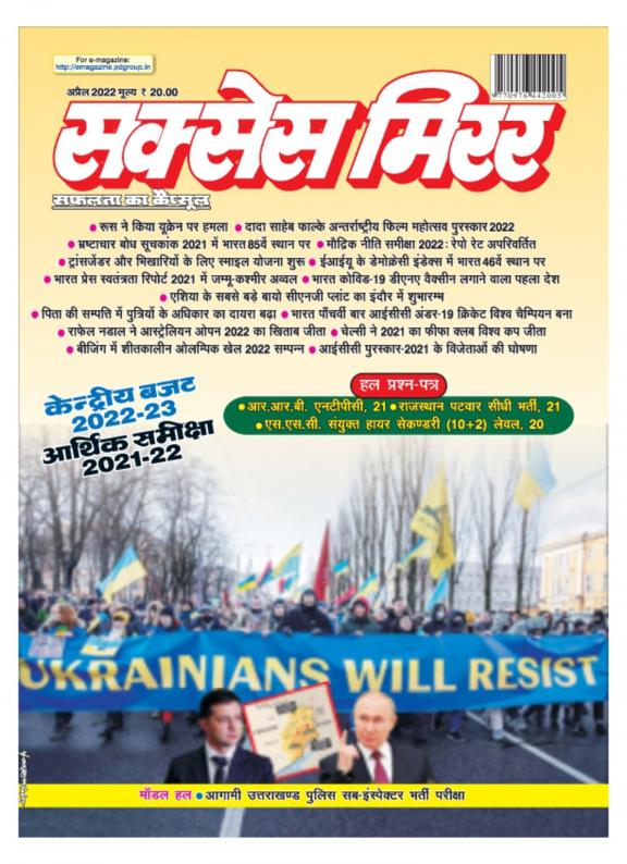 Success Mirror - Hindi is a Youth Oriented and This magazine provides - Overview of Latest events and Information which are useful for competitive Exams - Solved Question Paper and Career development Guidelines - Information about Jobs in Govt Sectors