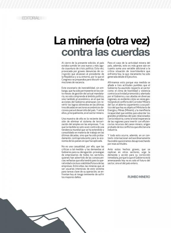 RUMBO MINERO es la revista de Perú y Latinoamérica de negocios de la minería