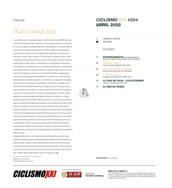La revista que mes a mes refleja toda la actividad del ciclismo argentino, latino e internacional en todas sus modalidades.