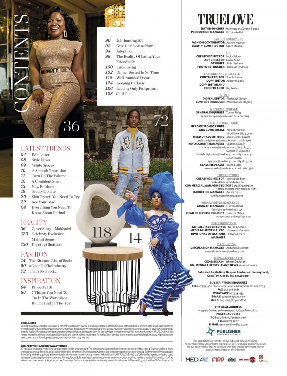 True Love is the iconic South African fashion, beauty and lifestyle magazine for black women. It is the go-to handbook and style guide for women who believe that their magazine should be stylish and thought provoking. It challenges its readers with in depth, focusing on subjects that stimulate debate and discussion.