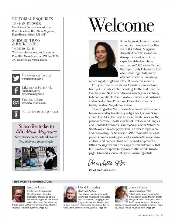 BBC Music Magazine is a monthly classical music magazine published by Immediate Media Company. It was first published in 1992 and is the best-selling classical music magazine in the world. The magazine covers all aspects of classical music, from news and reviews to features and interviews. It also features exclusive content from the BBC Proms and other BBC classical music events. BBC Music Magazine is a popular read for many classical music lovers, and is known for its in-depth coverage and expert analysis. It has helped many classical music lovers discover new music and learn more about the genre. Here are some of the things you can expect from BBC Music Magazine: * News and reviews of classical music * Features on classical music composers, performers, and conductors * Interviews with classical music figures * Exclusive content from the BBC Proms and other BBC classical music events If you're looking for a magazine that will help you stay up-to-date on the latest classical music news and trends, then BBC Music Magazine is a good choice. Subscribe today and start exploring the world of classical music!