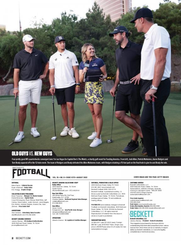 Dive into the exciting world of football collectibles and memorabilia with Beckett Football Magazine. We're thrilled to introduce you to this publication, your go-to source for all things related to football cards, collectibles, and the vibrant hobby of football memorabilia. Beckett Football Magazine, published by Beckett Collectibles LLC, is not just a magazine; it's your comprehensive guide to the world of football collectibles. As you explore the pages of Beckett Football Magazine, you'll find a world of content that caters to football collectors and fans alike: * Price Guides: Access up-to-date price guides for football cards, helping you stay informed about the value of your collectibles.