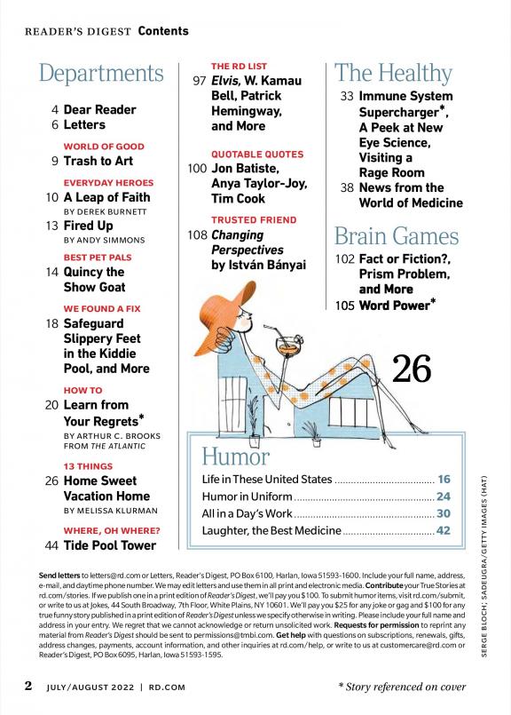 Experience the magic of Reader's Digest US and unlock a treasure trove of captivating stories, fascinating articles, and practical insights. For decades, Reader's Digest has been a trusted companion, bringing joy, inspiration, and valuable insights to millions of readers. Each issue is filled with a diverse range of content, including real-life stories of courage and resilience, health and wellness tips, practical advice, and engaging features that celebrate the beauty of life. With a Reader's Digest US subscription, you'll receive monthly deliveries of uplifting and informative content that will brighten your day and expand your horizons. From inspiring personal accounts to expertly curated content across a variety of topics, Reader's Digest is the perfect companion for those seeking both entertainment and enlightenment. Join the millions of readers who have embraced the joy of Reader's Digest US. Subscribe today and immerse yourself in a world of discovery, laughter, and meaningful connections.