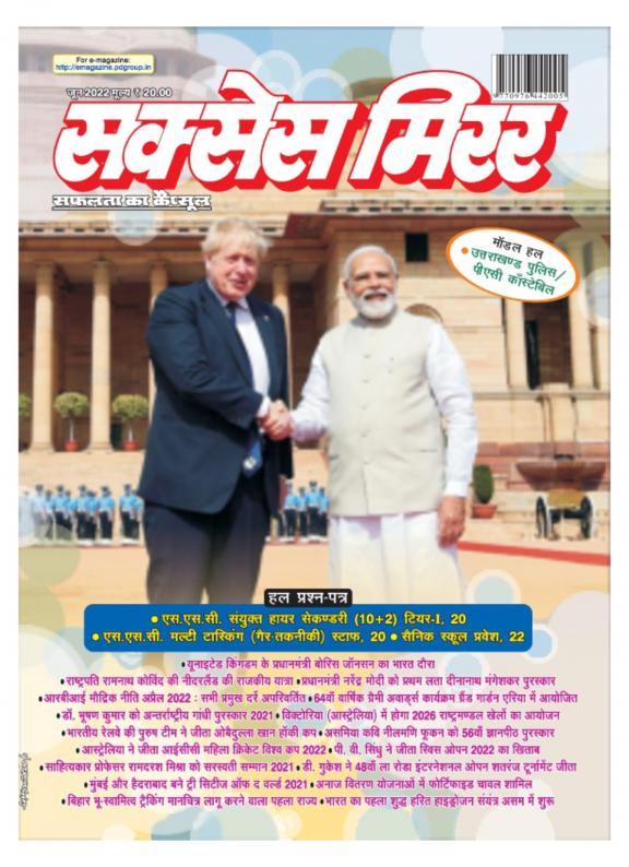 Success Mirror - Hindi is a Youth Oriented and This magazine provides - Overview of Latest events and Information which are useful for competitive Exams - Solved Question Paper and Career development Guidelines - Information about Jobs in Govt Sectors
