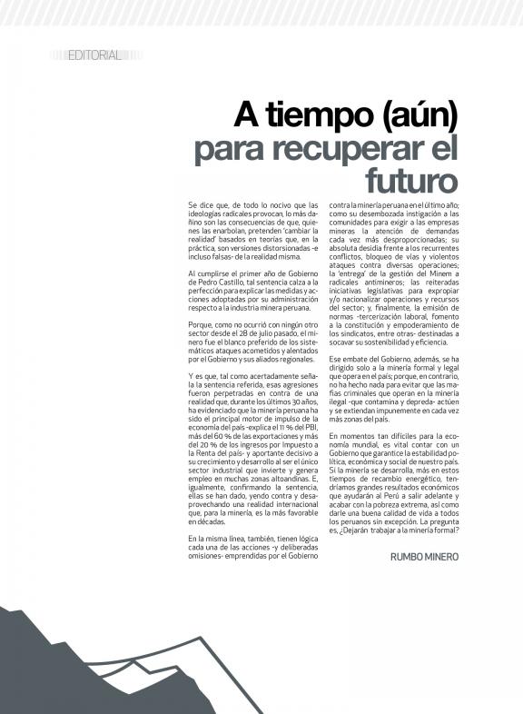 RUMBO MINERO es la revista de Perú y Latinoamérica de negocios de la minería