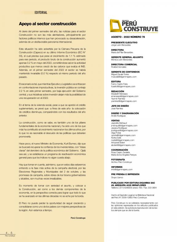 PERÚ CONSTRUYE es la revista que refleja la actividad de la construcción en Perú