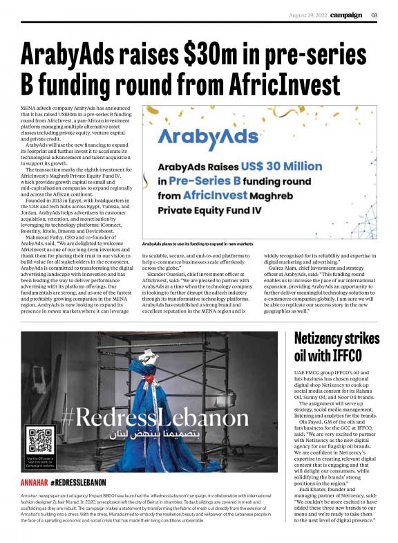Campaign ME is the Middle East edition of the UK’s leading magazine for the advertising and media industry. Our aim is to champion creativity and best practice and to act as a constructive forum for debate in the midst of an ever-evolving media landscape.