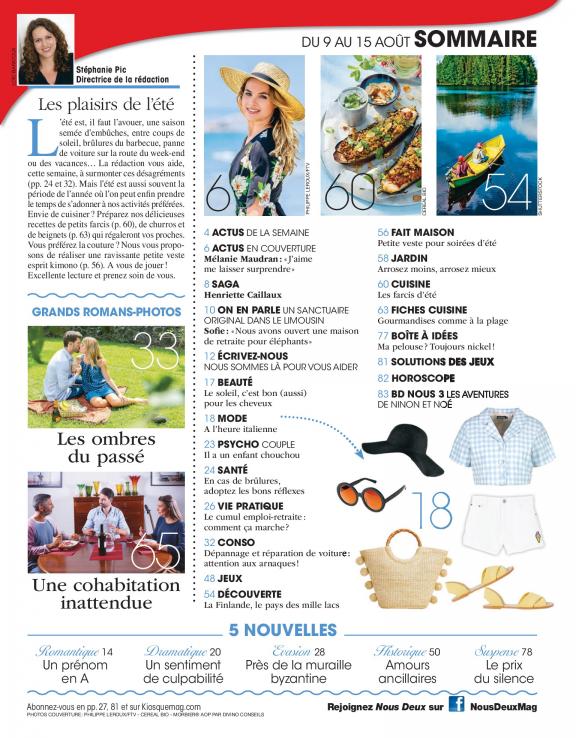 La marque du Féminin Romanesque. ( France ) Nous Deux invite au rêve avec la fiction romanesque et offre du pratique avec sa partie magazine féminin (mode, beauté, cuisine, évasion etc.)