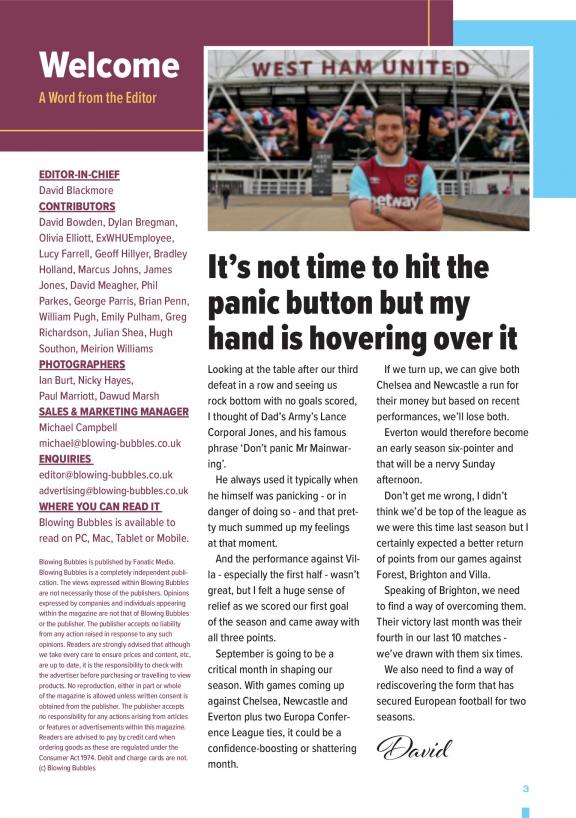 The biggest West Ham United monthly magazine, Blowing Bubbles is edited by a team of journalists and aims to inform, entertain and unite West Ham fans across the globe with our easy-to-read, well-designed & professional magazine. You can have a hard copy of every issue of Blowing Bubbles posted through your door, visit our website for details.