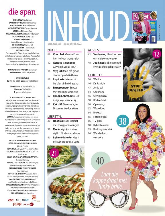 Kuier gee raad oor alles van ouerskap, geldsake, verhoudings en gesondheid tot mode, skoonheid, dekor en kos. Die tydskrif deel inspirerende stories oor mense in die gemeenskap en streef daarna om lesers op te hef en te bemagtig deur die klem te plaas op positiewe stories en suksesvolle rolmodelle. Die projekte is grootliks gemeenskapgebaseerd, met die visie om waarlik ’n verskil in lesers se lewens te maak.