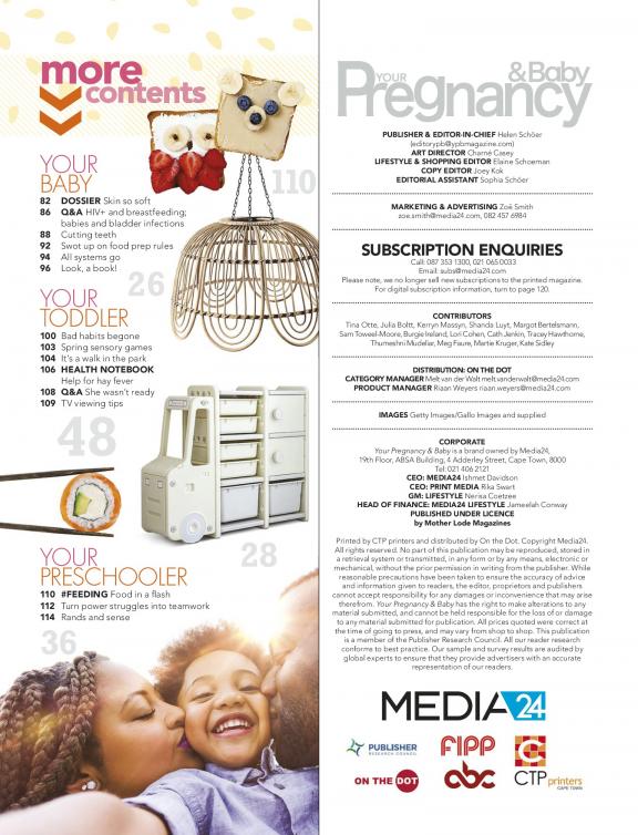 Your Pregnancy is the only local magazine that offers relevant, credible and accurate information on all aspects of pregnancy. Its local and international experts answer all questions quickly and respectfully. The magazine acknowledges pregnant women’s need to look and feel good. They are concerned about their baby’s health and wellness, but also care about their own. The magazine provides all the info that’s needed, as well as the latest fashion and beauty trends, health issues and exercises. It covers all aspects of pregnancy. The team loves what it does – and it shows.