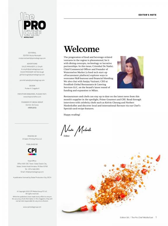 It’s about food. Seriously. Unlike other F&B trade magazines, The Pro Chef Middle East focuses on chefs and their inspiration, allowing them to demonstrate their talents as well as providing a platform for skill transfer, produce knowledge and recipe development. And, unlike other food magazines aimed at the amateur cook, it will provide enthusiastic fine diners with a real insight into the world of the professional chef, inspiring them to visit restaurants and develop their own cooking techniques and menus. For both communities, it’s a resource of new products and equipment. And for suppliers and manufacturers wanting to reach both a professional front and back of house audience and a keen amateur community, it’s an irresistible mix. The Pro Chef Middle East is a food magazine like no other in the regional market, aimed exclusively at a knowledgeable and high spending audience, interested in everything from quality knives or kitchen equipment to premium produce and speciality ingredients. If you’re serious about food, this is the place to be.