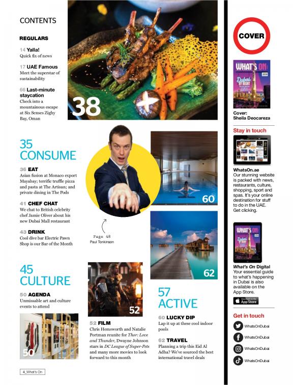 Stylish, Contemporary, Informed, Inspirational and Fun. Aimed at people looking to make the most of their time in the UAE. What’s On is packed with expert opinion, insider info, news, reviews, competitions and much more. What’s On provides in-depth coverage, strong emphasis on eating out, it is design driven, and has a strong credible entertainment guide.