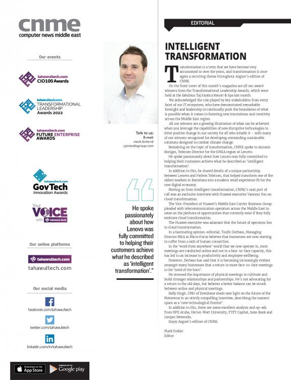 For any serious IT player in the Middle East, there are key market sectors that are easy to list – government, energy, banking, education, health, hospitality and so on. One key question is how do you use your marketing spend effectively to reach and influence the key decision makers in these markets? Plan and influence their strategies? For two decades, Computer News Middle East (CNME) has been the link between the regional IT player and these key target markets. It has driven the messages of local relevance, business benefit and technology into focus for these decision makers. The magazine covers all the important market sectors in depth, combining interviews, best practice case studies, news analysis and market trends through focused sections. Add to this analysis of global news, exclusive interviews with global IT players from Silicon Valley to Taipei and you have an authoritative route to market.