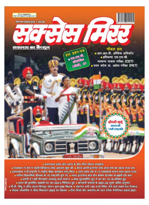 Success Mirror - Hindi is a Youth Oriented and This magazine provides - Overview of Latest events and Information which are useful for competitive Exams - Solved Question Paper and Career development Guidelines - Information about Jobs in Govt Sectors