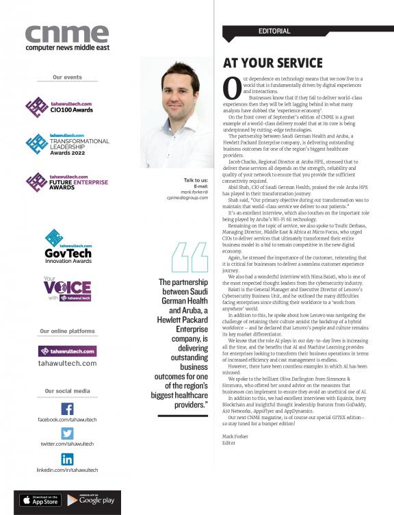 For any serious IT player in the Middle East, there are key market sectors that are easy to list – government, energy, banking, education, health, hospitality and so on. One key question is how do you use your marketing spend effectively to reach and influence the key decision makers in these markets? Plan and influence their strategies? For two decades, Computer News Middle East (CNME) has been the link between the regional IT player and these key target markets. It has driven the messages of local relevance, business benefit and technology into focus for these decision makers. The magazine covers all the important market sectors in depth, combining interviews, best practice case studies, news analysis and market trends through focused sections. Add to this analysis of global news, exclusive interviews with global IT players from Silicon Valley to Taipei and you have an authoritative route to market.
