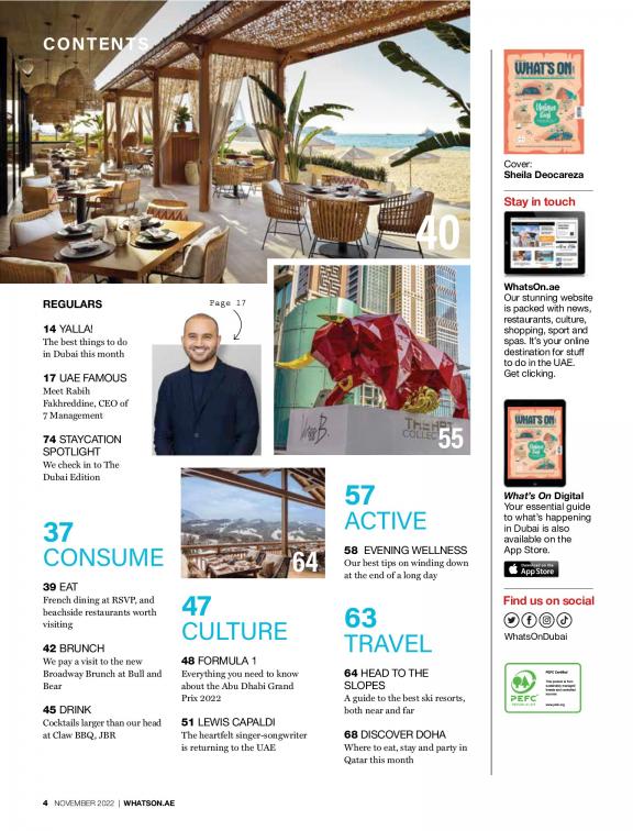 Stylish, Contemporary, Informed, Inspirational and Fun. Aimed at people looking to make the most of their time in the UAE. What’s On is packed with expert opinion, insider info, news, reviews, competitions and much more. What’s On provides in-depth coverage, strong emphasis on eating out, it is design driven, and has a strong credible entertainment guide.