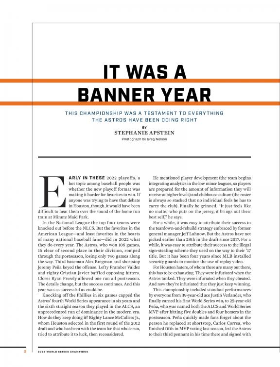HOUSTON ASTROS - 2022 World Series Champions | Spe | Noviembre 2022