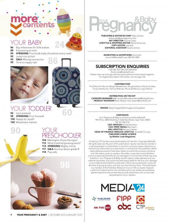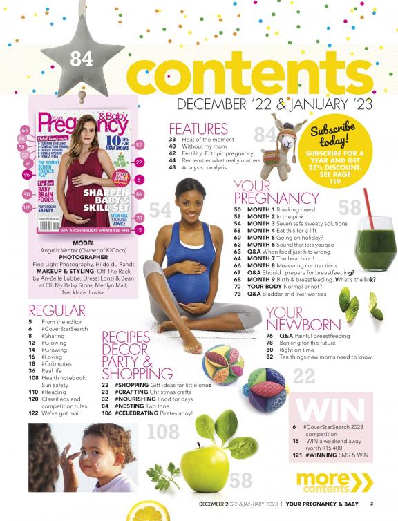 Your Pregnancy is the only local magazine that offers relevant, credible and accurate information on all aspects of pregnancy. Its local and international experts answer all questions quickly and respectfully. The magazine acknowledges pregnant women’s need to look and feel good. They are concerned about their baby’s health and wellness, but also care about their own. The magazine provides all the info that’s needed, as well as the latest fashion and beauty trends, health issues and exercises. It covers all aspects of pregnancy. The team loves what it does – and it shows.