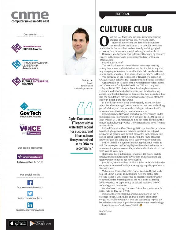 For any serious IT player in the Middle East, there are key market sectors that are easy to list – government, energy, banking, education, health, hospitality and so on. One key question is how do you use your marketing spend effectively to reach and influence the key decision makers in these markets? Plan and influence their strategies? For two decades, Computer News Middle East (CNME) has been the link between the regional IT player and these key target markets. It has driven the messages of local relevance, business benefit and technology into focus for these decision makers. The magazine covers all the important market sectors in depth, combining interviews, best practice case studies, news analysis and market trends through focused sections. Add to this analysis of global news, exclusive interviews with global IT players from Silicon Valley to Taipei and you have an authoritative route to market.