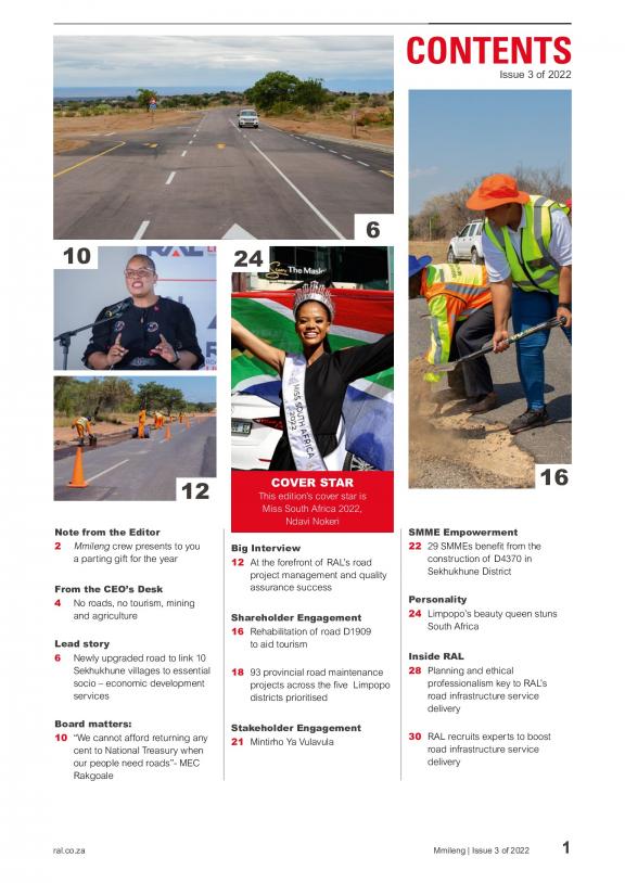 The official quarterly corporate newsletter for Roads Agency Limpopo. Issue 1 of 2020