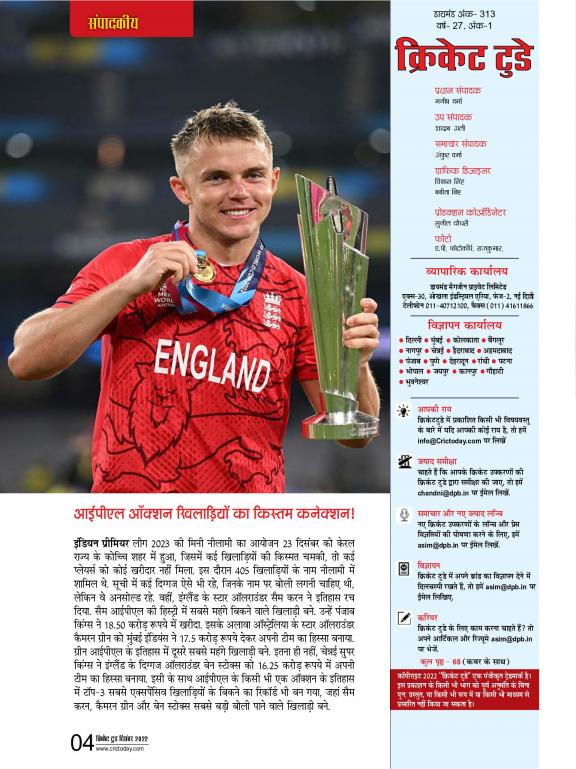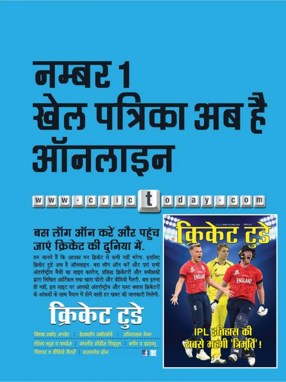 Cricket Today is a monthly cricket magazine in Hindi published by a Delhi-based company, Diamond Magazines. It is one of the most popular cricket magazines in India, and is known for its in-depth coverage of all aspects of the game, including: * Match reports and analysis: Cricket Today provides detailed match reports and analysis of all major cricket matches, including Test matches, One-Day Internationals, and T20 Internationals. The magazine also covers domestic cricket tournaments in India, such as the Ranji Trophy and the Indian Premier League. * Player profiles and interviews: Cricket Today features profiles of top cricket players from India and around the world, as well as interviews with them. These profiles and interviews provide readers with insights into the lives and careers of these players. * Expert columns and commentary: Cricket Today features columns and commentary from leading cricket experts, including former players, coaches, and journalists. These columns and commentary provide readers with different perspectives on the game. * Cricket news and trends: Cricket Today covers the latest cricket news and trends from India and around the world. The magazine also provides analysis of the latest developments in the game. Cricket Today is a valuable resource for anyone who is interested in cricket. It is a must-read for anyone who is looking to stay informed about the latest cricket news and trends, or who is looking for in-depth coverage of all aspects of the game.