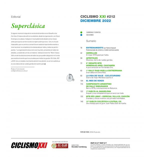 La revista que mes a mes refleja toda la actividad del ciclismo argentino, latino e internacional en todas sus modalidades.