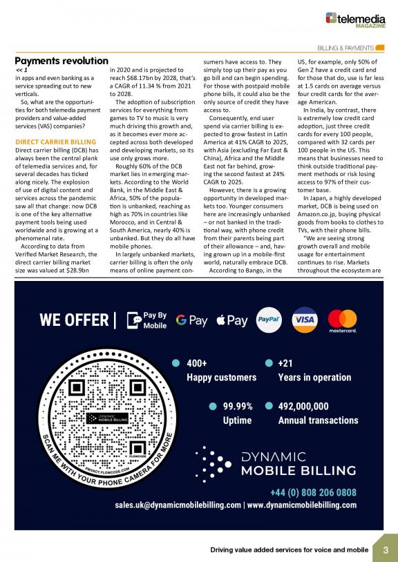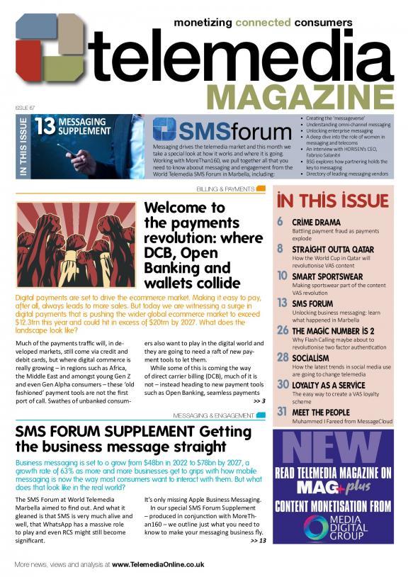 Telemedia Magazine is for any business that wishes to engage and commercialize “connected consumers” using mobile devices to respond or interact with value added services, premium content and applications. We report on how carrier billing and other alternative payment platforms continue to evolve and, in partnership with Service Providers and Aggregators – form part of the “Telemedia” value chain which is typically underpinned by minutes, messages and traffic. Published in print and online; essential reading for Merchants, Media and Content Owners – who want seamless micropayment solutions and engagement tools; that can immediately convert sales across the globally expanding range of Media, Affiliate and Advertising networks.