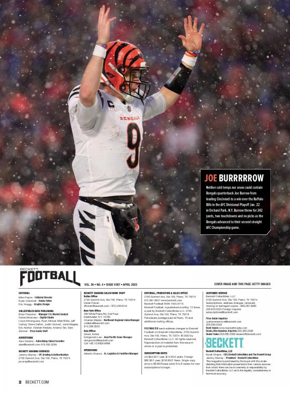 Dive into the exciting world of football collectibles and memorabilia with Beckett Football Magazine. We're thrilled to introduce you to this publication, your go-to source for all things related to football cards, collectibles, and the vibrant hobby of football memorabilia. Beckett Football Magazine, published by Beckett Collectibles LLC, is not just a magazine; it's your comprehensive guide to the world of football collectibles. As you explore the pages of Beckett Football Magazine, you'll find a world of content that caters to football collectors and fans alike: * Price Guides: Access up-to-date price guides for football cards, helping you stay informed about the value of your collectibles.